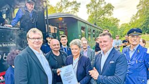 Am Freitag, den 19. September fand die offizielle Feierstunde des Kleinbahnvereins zum 25. Geburtstag statt. Es konnten zahlreiche Gäste und Gratulanten begrüßt werden, die neben Grußworten auch Perspektiven für die Zusammenarbeit der nächsten 25 Jahre im Gepäck hatten. Ein Höhepunkt war die Überreichung eines weiteren Förderbescheids für den Wiederaufbau von Dampflok „Emma“ durch Ministerin Hüskens. Die „Volksstimme“ (Lokalteil Burg) berichtet zu diesem Anlass – mit freundlicher Genehmigung des Autors darf der Beitrag an dieser Stelle wiedergegeben werden.Weiter lesen →